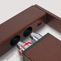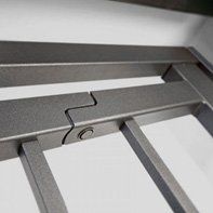 Una delle caratteristiche vincenti di ATHENA è lo speciale Snodo Brevettato che permette alla grata una facile e fluida apertura totale esterna e totale Interna, consentendo un'agevole movimentazione delle persiane. I perni di rotazione degli snodi, ricavati dall’acciaio pieno, sono applicati su tubolari realizzati mediante lavorazione LASER TUBO.