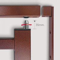 Il telaio è telescopico e realizzato con robuste staffe d'acciaio di spessore 60/10 che si inseriscono nel tubolare zincato di spessore 20/10.