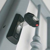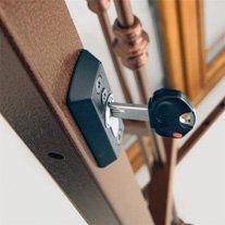 La serratura è dotata di deviatori che comandano 2 puntali di chiusura in Acciaio pieno, 1 superiore e 1 inferiore.
